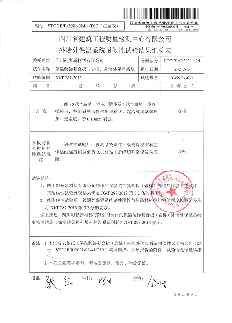 保温装饰复合板(岩棉)检测报告